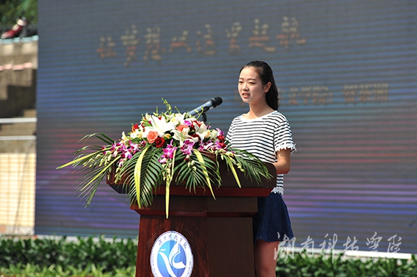 典礼上,2016级新生代表贺茶湘同学热情洋溢地发言,号召大家扬帆起航,奋发向上;教师代表覃佐东博士情真意切,悉心教导。