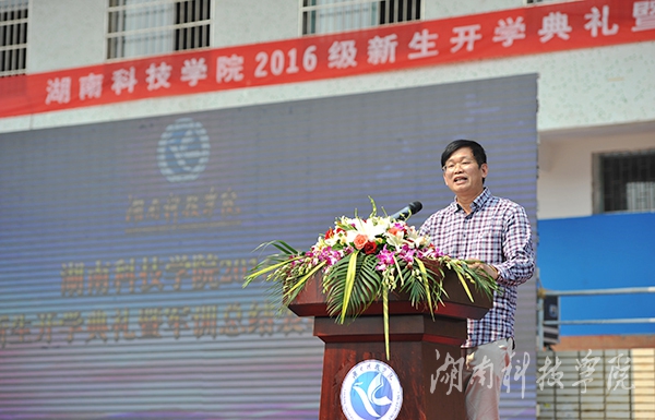 本网讯 9月23日上午,2016级新生开学典礼在田径场隆重举行。名誉校长、杰出校友、中国工程院院士欧阳晓平出席并讲话,校党委副书记、校长曾宝成致辞。在家校领导唐艳明、宋宏福、郑山明、李常健、吴小林、程智开、袁先友、陈仲庚出席。典礼由副校长宋宏福主持。