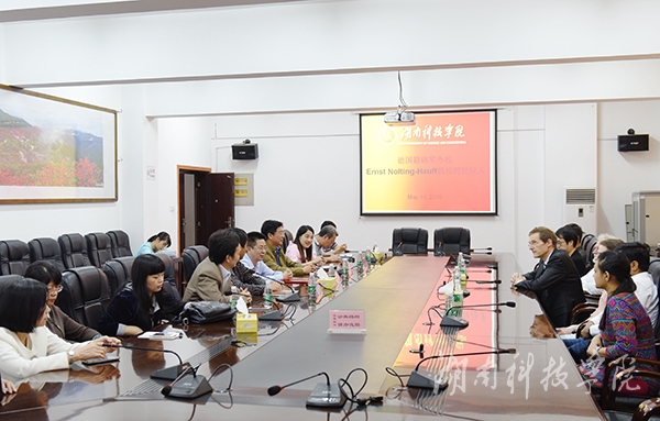 本网讯(记者 张云芳 摄影 何帅文)5月18日下午,学校在行政办公楼六楼会议室为德国籍钢琴外教Ernst Nolting-Hauff举行教授聘任仪式。校长曾宝成向Ernst Nolting-Hauff颁发教授聘书。