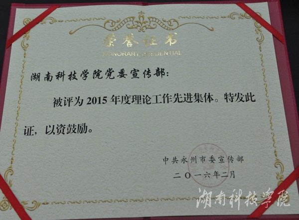 校党委宣传部被评为永州市理论工作先进集体(图)