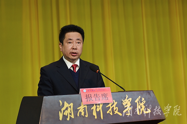 党委副书记、校长曾宝成作题为《聚焦目标任务,狠抓工作落实,为建设高水平应用型大学打下坚实基础》的工作报告。曾宝成在报告中总结回顾了去年学校工作。他指出,2015年,学校在省委省政府的正确领导下,全校上下认真贯彻落实党的十八大和十八届三中、四中、五中全会精神,深入学习贯彻习近平总书记系列重要讲话精神,遵循“六精”战略布局,励精图治,攻坚克难,圆满完成了学校《章程》核准与颁布、第三次党代会召开、干部竞聘上岗、绩效工资改革等在学校发展史上具有重要意义的一系列大事,在思想政治工作、人才培养、学科建设、科学研究、社会服务、内部管理等方面取得了可喜成绩,呈现出良好发展势头和广阔发展前景。