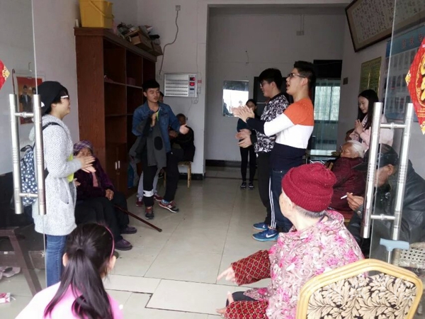 志愿者们为老人们表演节目