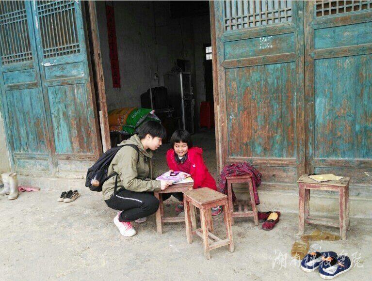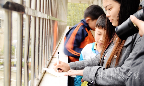 理学院服务团:关爱农村留守儿童,特别的爱给特别的你。时间:3月5日,地点:双牌县五里牌镇。