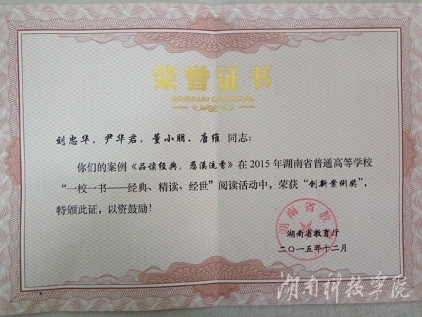 这是继我校阅读案例《行吟潇湘,品读经典,涵养书香》获得2015年华中赛区二等奖、全国优秀奖之后的又一荣誉。