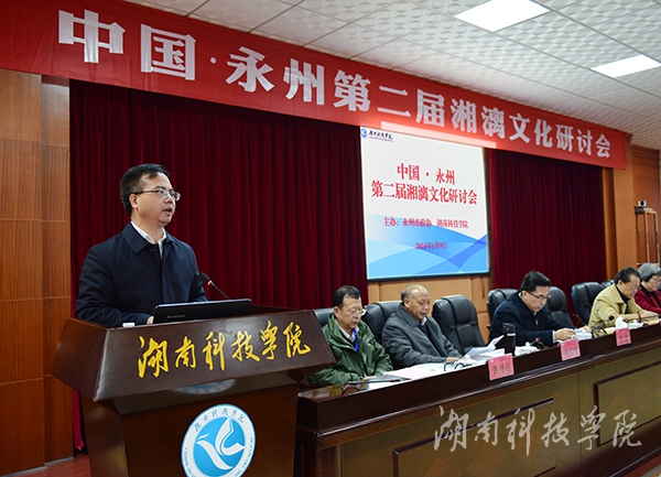 陈弘对各位专家学者的到来表示热烈欢迎。他说,湖南与广西,特别是永州与桂林自古以来就山水相连、文化相融、亲情相依,有着非常亲密的渊源关系,两大区域的交融汇通,使两地在政治、经济、文化等方面呈现区域一体性,形成了地域特色明显的湘漓文化。他认为,研究湘漓文化既是现实的需要,也是义不容辞的责任,能够为湘桂两地的社会发展提供丰富的精神动力和智力支持,继续挖掘两地的历史文化底蕴,探索社会发展的互补性。