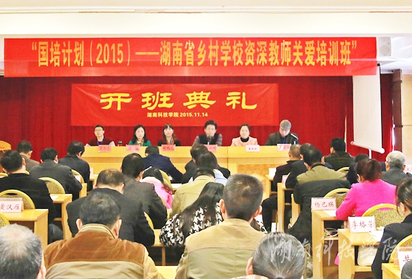继续教育学院院长徐纯先等出席开班典礼,徐纯先、李国家、陈昌卫担任班主任。来自永州市各县区的70名农村中小学资深教师参加培训。