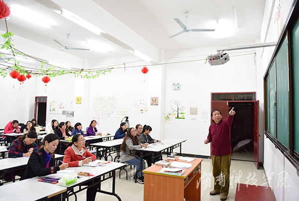 本网讯(记者 胡蕊蕊 实习记者 刘梦雅 平宸熙)“厅屋中间有条藤,藤子发花十二层”伴随着旋律优美,节奏欢快的曲调,11月10日晚,欧小松教授女书培训沙龙在美术楼南楼403教室开课。副校长宋宏福出席,来自全校的20位青年女教师参加。沙龙由科技处处长杨金砖主持。