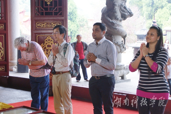 本网讯(通讯员 刘泓 张菊芳)为加深外籍教师对永州文化的了解、丰富活跃外籍教师的日常生活,11月7日,学校组织来自澳大利亚、日本和印度的新进外籍教师一行7人前往宁远县拜访九嶷山舜帝陵、参观文庙、体验民俗活动,感受永州文化。