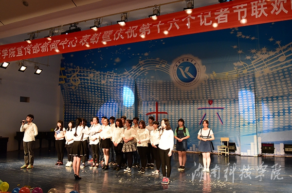 本网讯(实习记者 黄宇婷 张云芳) 11月8日晚,来自全校新闻战线的近200名校园传媒人齐聚一堂,庆祝第十六个记者节,同时表彰新闻宣传工作者。校党委宣传统战部部长宋振文带领新闻中心老师与来自新闻中心记者站、“校园之声”广播站、校园网络电视台、新媒体中心及大学生新闻通讯社、播音与主持协会、新媒体协会的校园传媒人共庆自己的节日。