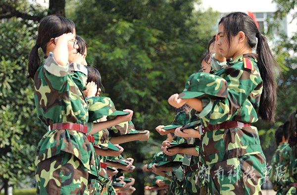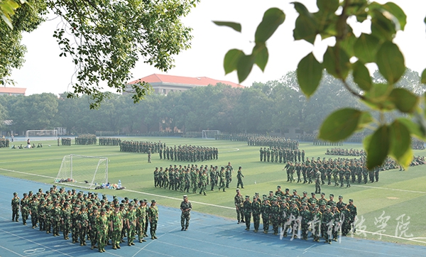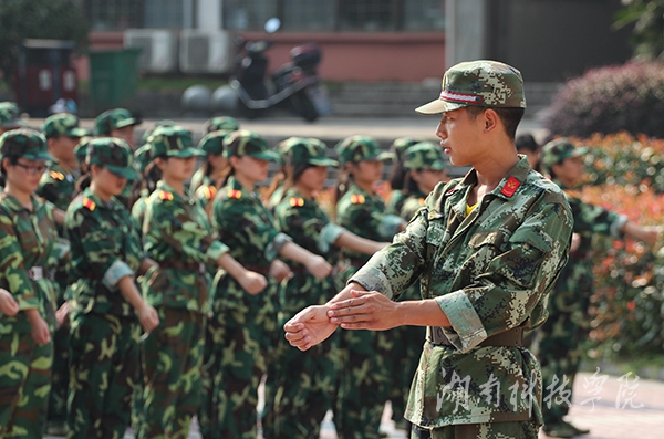 近日,我校2015级新生军训拉开序幕,近4000名新生将开始为期半个月的军训,迎接大学的第一个挑战。他们身着整齐的军装,从站军姿、立正、稍息、跨立等基本项目开始学起,从握拳到摆臂,从敬礼到脱帽戴帽,每一个动作都力求标准规范,认真走好大学第一步。(摄影 何帅文)