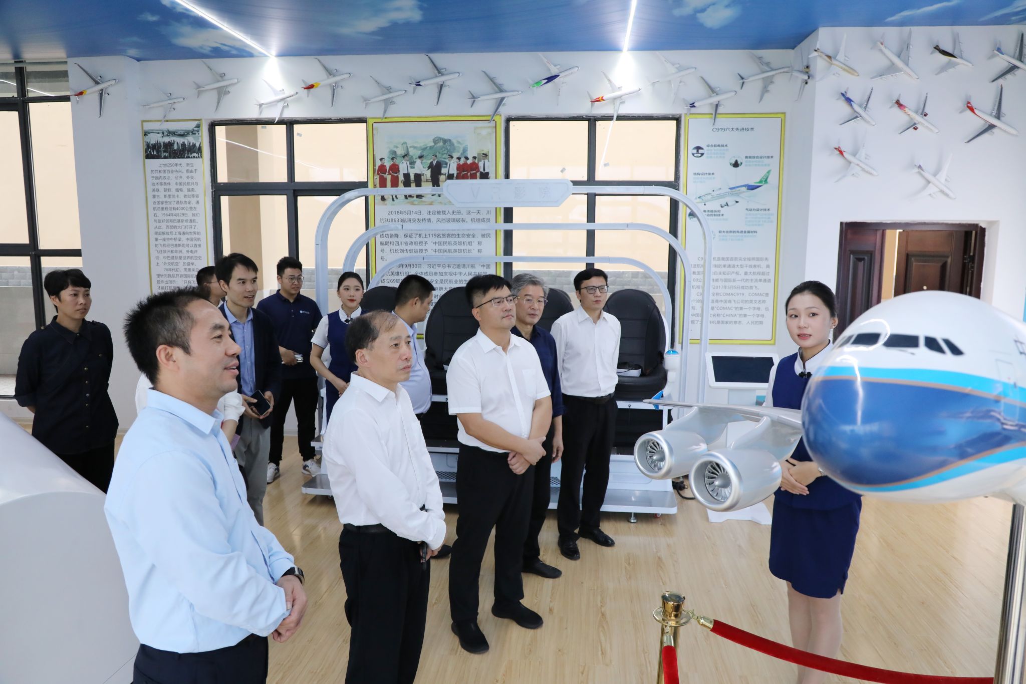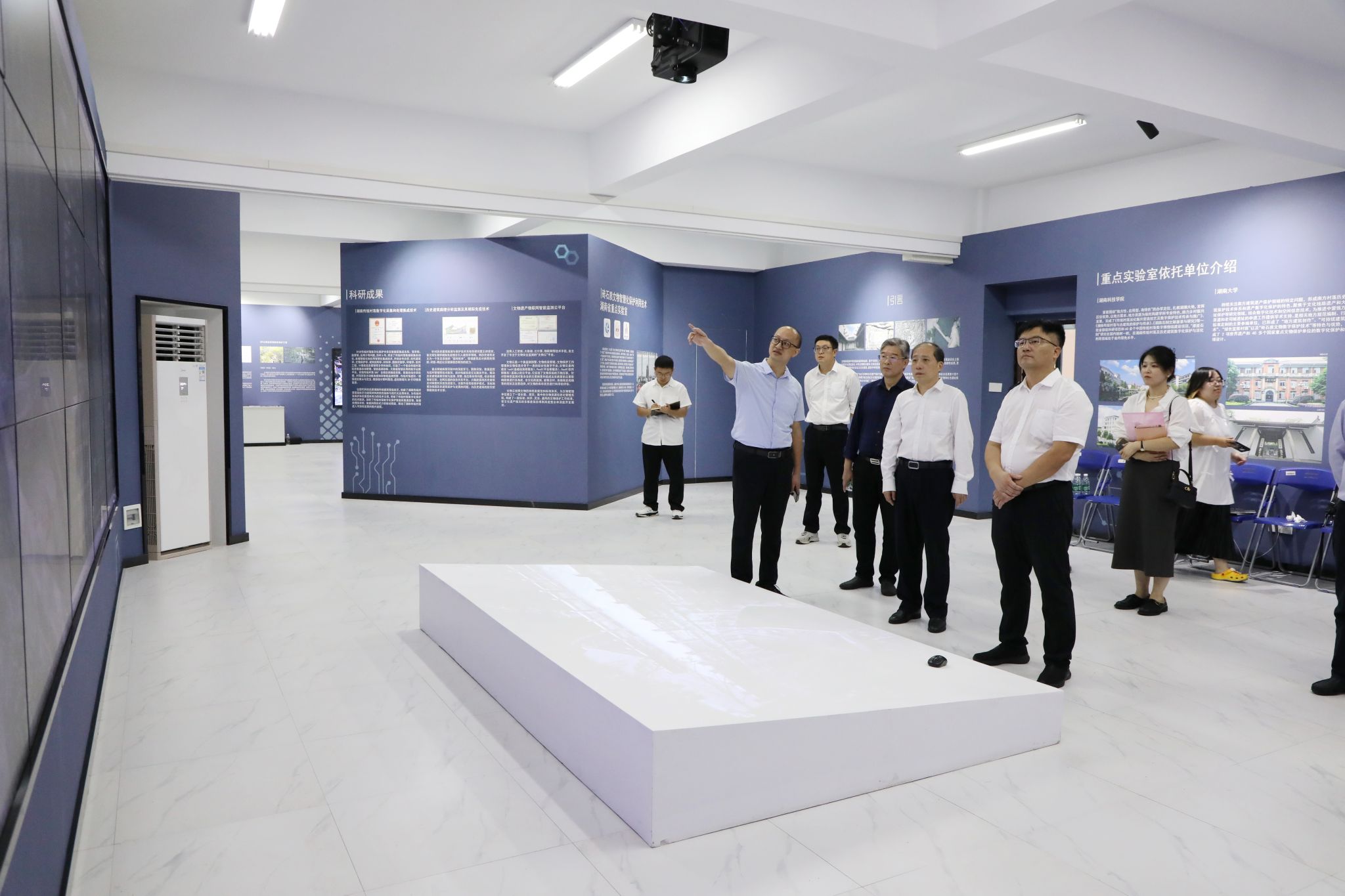 廖志坤一行参观了我校文法学院、外国语学院、大学生心理健康中心、航空模拟舱、国家级众创空间、砖石质文物智慧化保护利用技术湖南省重点实验室等场所。