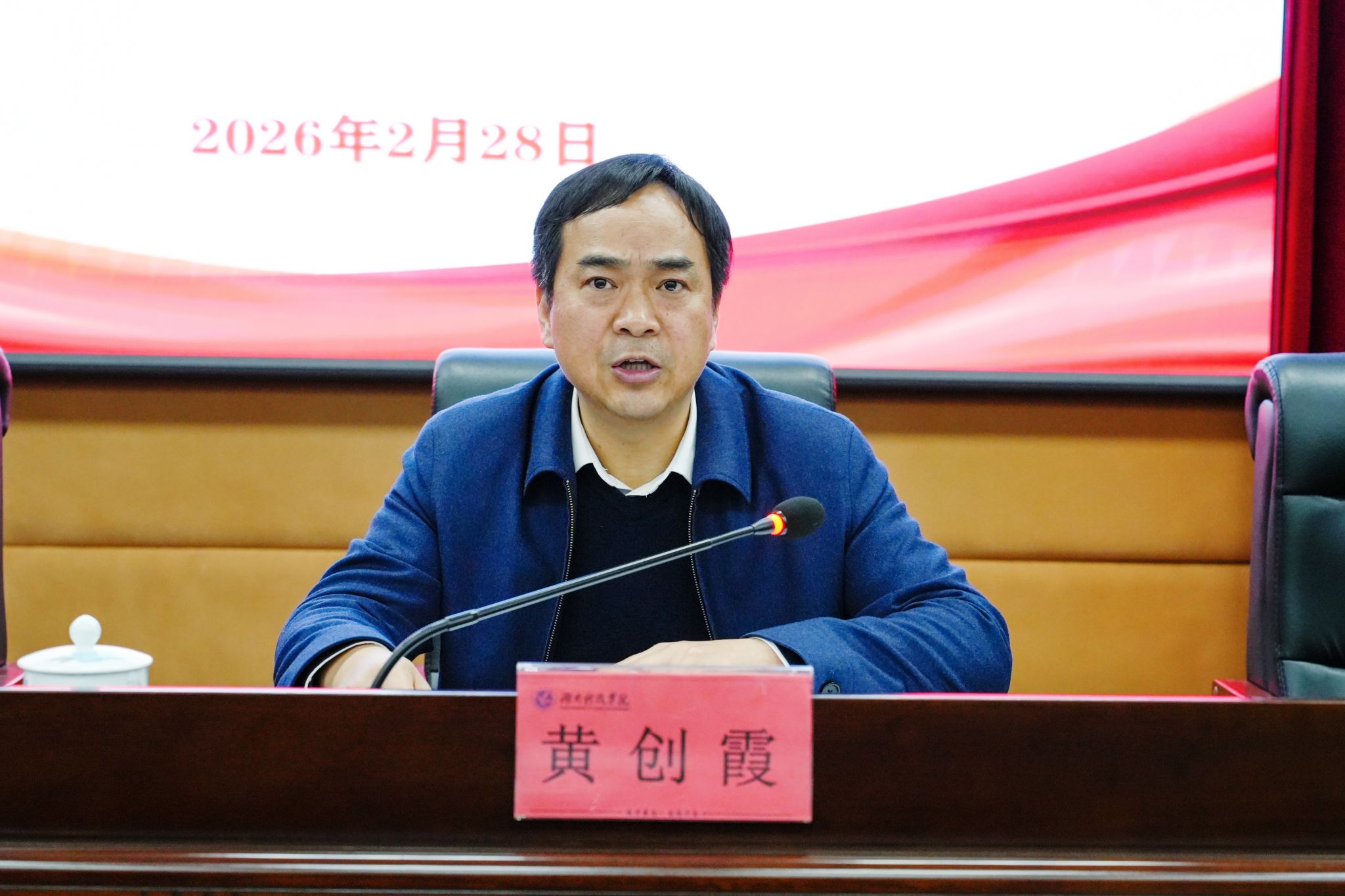 黄创霞就做好2026年重点工作提出三点要求:一是在学习上求“深”,坚持党建引领强根基。要扎实做好巡视整改“后半篇文章”,始终把巡视整改作为重大政治任务,以实实在在的工作成绩体现巡视整改的成效。要扎实开展树立和践行正确政绩观学习教育,确保学习教育取得实效。要扎实做好学校第五次党代会的筹备工作。二是在工作上求“精”,聚焦中心重点强本领。深入学习全省教育大会精神,加强教育综合改革,在抓实“十五五”规划编制工作、落实立德树人根本任务、强化学科专业内涵建设、推进科研创新与成果转化、全面提升高层次人才引育质效等方面跑出学校高质量发展的加速度。三是在作风上求“实”,扛稳压实责任强担当。要扛牢政治责任,强化担当作为,各部门、各学院要锚定发展目标、精准知责明责,确保学校各项决策部署落地生根、开花结果。要锤炼实干作风,提升落实效能,不断提升师生的获得感、幸福感与归属感,以优良作风凝聚起干事创业的强大正能量。要坚持同心同向,凝聚发展合力,为学校高质量内涵式发展凝聚起磅礴合力。要严守纪律底线,筑牢廉洁根基,共同维护风清气正、崇廉尚洁的校园政治生态。