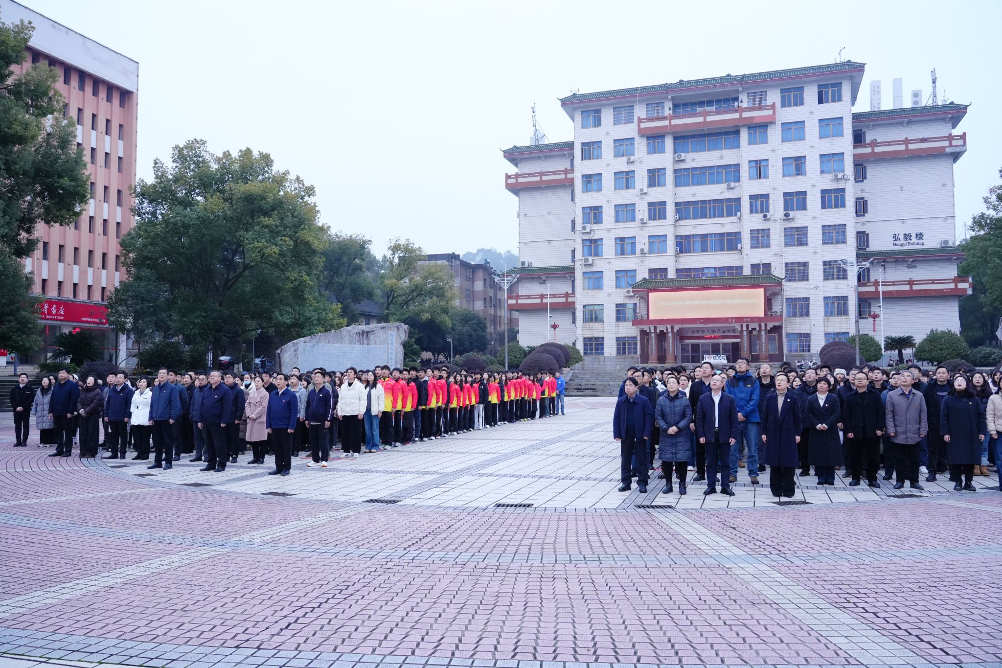 全体中层正职干部、教学学院党总支副书记、辅导员、学生代表参加升旗仪式。