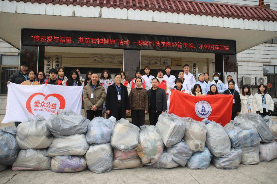 本网讯(通讯员 曾凯琴 吴智婷)12月24日上午,经济与管理学院党总支副书记龙诗颐、团总支书记张鹏带领学生志愿者走出校园,深入永州市国辉精神病医院开展“传递爱与希望,共筑精神健康”志愿服务活动。