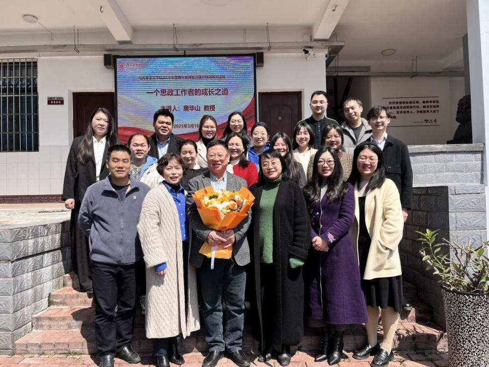 唐华山以“一个思政工作者的成长之道”为主题,从“人生经历”“工作感悟”“未来展望”等方面阐述了思政教师专业化发展路径。他结合自身经历提醒青年教师在信息时代要广泛阅读、拓宽视野、持续学习,他认为思政课教师要紧跟学科前沿、丰富知识储备,用真情实感打造有温度、深度、力度的课堂。
