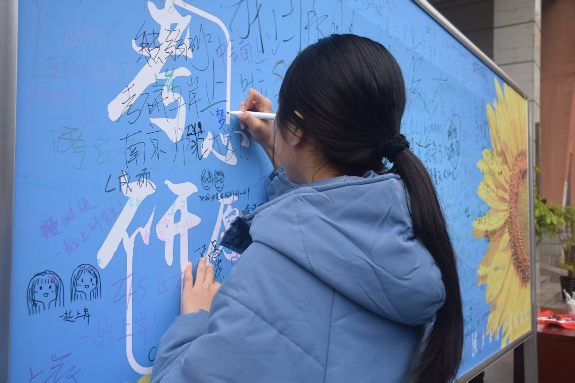 图书馆还在一楼入口处设置了“一举夺魁”心愿墙,吸引了众多学子驻足,大家写下真挚愿望,相互激励。