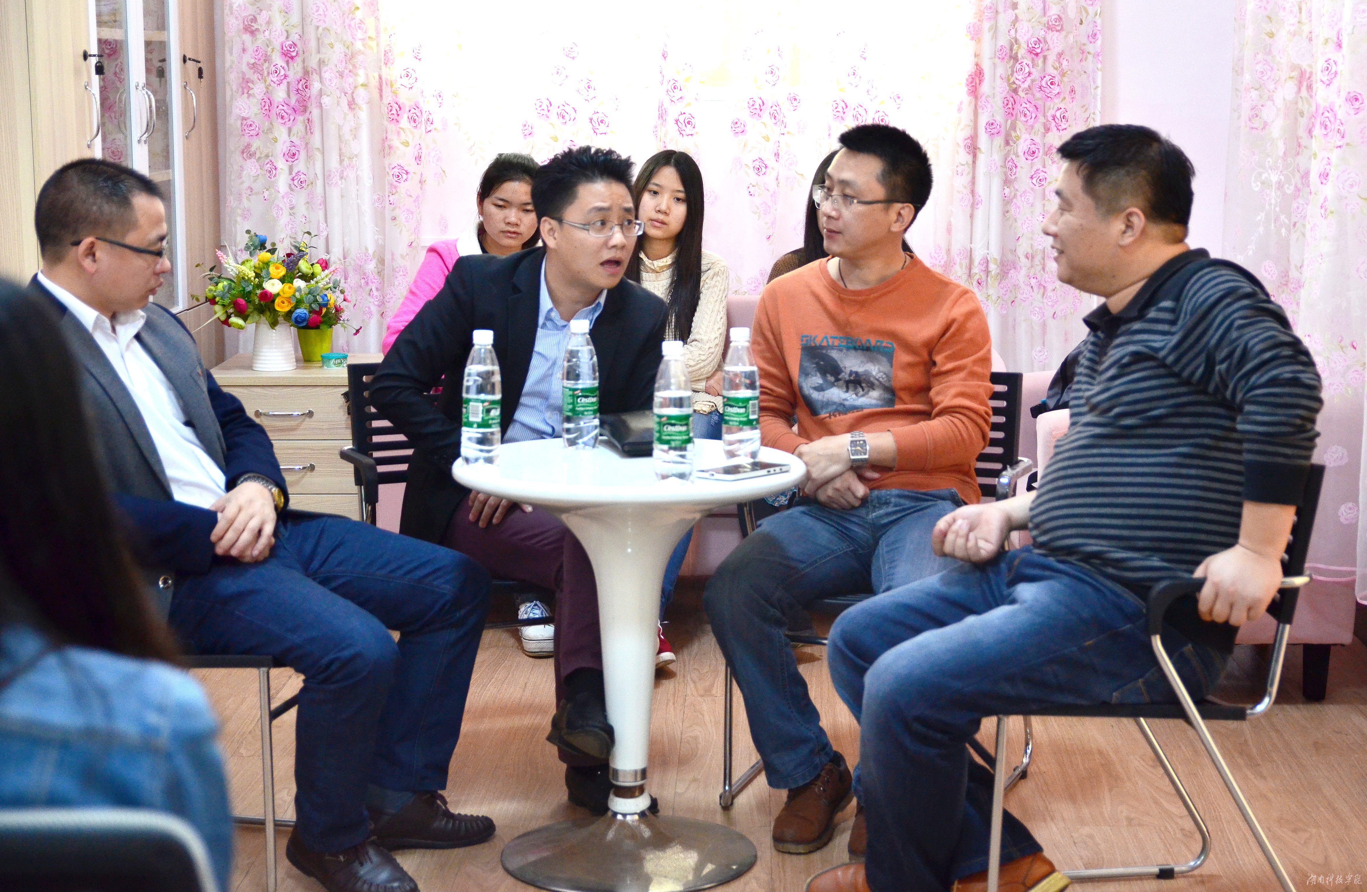 本网讯 (记者 李瑞 龙夏萍 摄影 刘信)4月23日下午,外国语学院邀请香港昌盛实业发展有限公司总经理董春来、广东雷普实业有限公司总经理曾湘辉与该院部分学生在菁菁书院齐聚一堂,忆往昔,话发展。