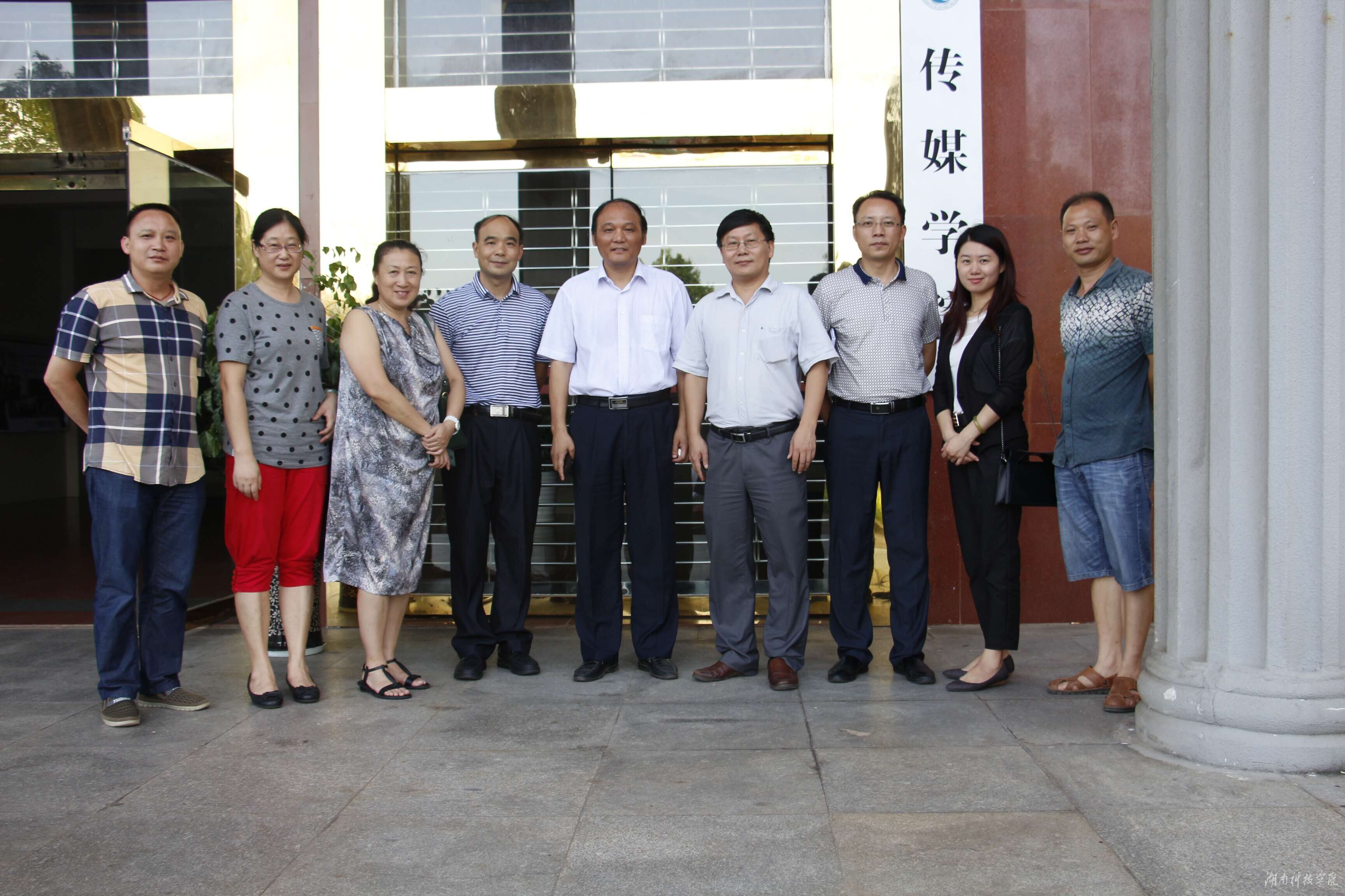 本网讯(记者 牛泽宇)有朋自远方来,不亦乐乎!6月26日,韶关学院文学院党委书记杨国强率新闻与传播系主任吴志文博士等一行5人来校考察交流。传媒学院院长杨增和、党总支书记戴丽岩等在日新楼热情接待来访一行,双方就教学、科研、实验室建设、产学研等进行深入交流。