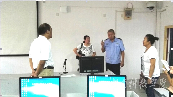 保卫处陶振民和该院院长杨增和、党总支书记戴丽岩、实训教学部主任刘春侠等同志对所有教室、实验室、器材室,办公室的门窗、电线及通道进行了仔细排查检测,针对存在的安全隐患,现场研究措施。陶振民提出,在机房安装二氧化碳灭火器,以防电路起火损坏实验室,要求老师们树立防火防盗意识,注意细节,如办公室的电线、插座不要放置在饮水机旁。