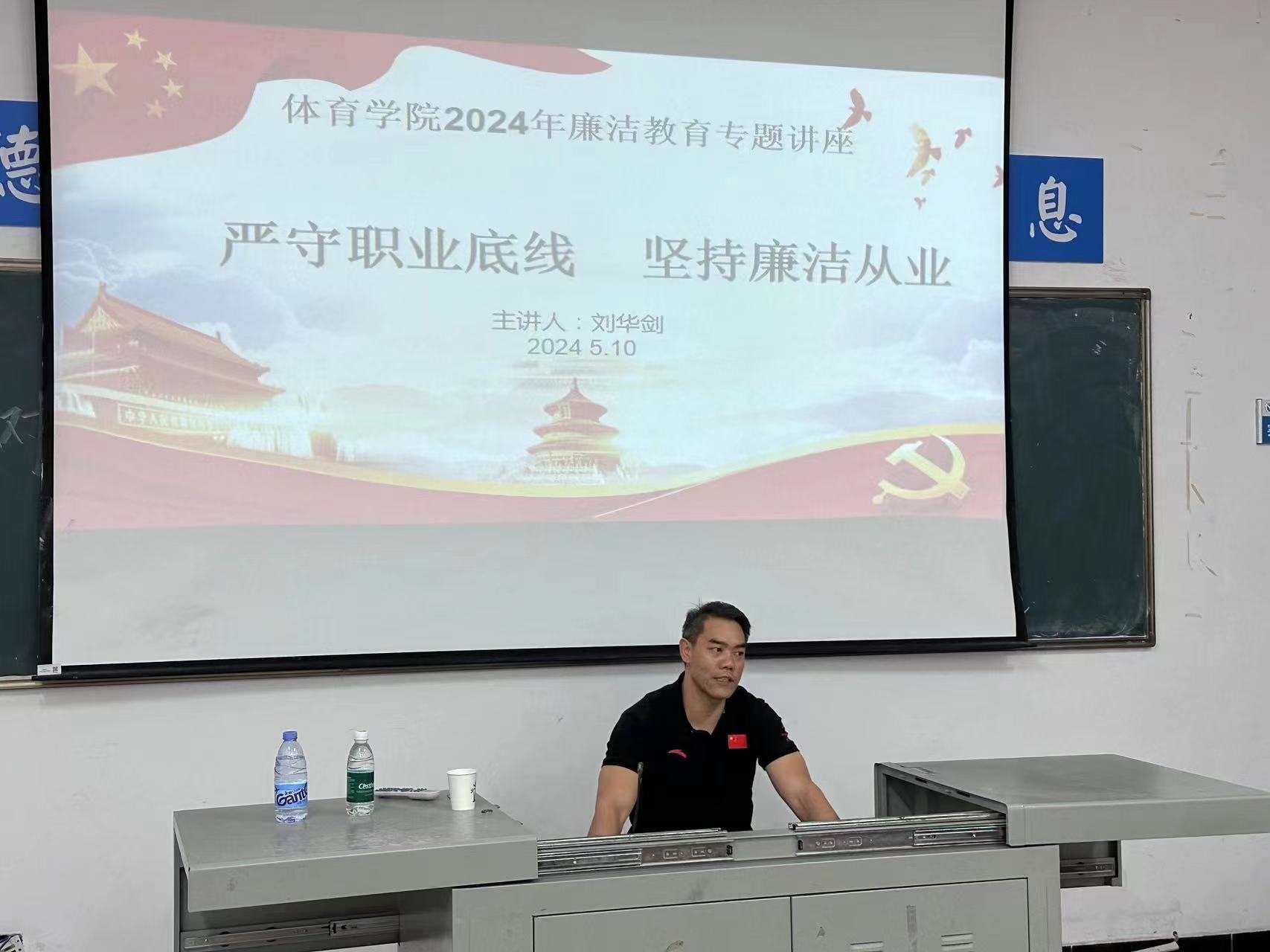 本网讯(通讯员 黄婉 段濛)5月10日,体育学院团总支团校部于训练馆多媒体教室开展了主题为“严守职业底线 坚持廉洁从业”的廉洁教育讲座,学院党总支副书记刘华剑担任主讲人,学院2020级部分毕业生和其他年级学生干部参加讲座。