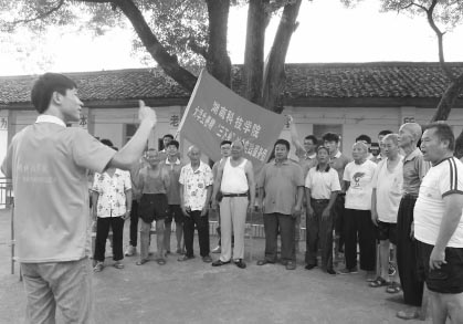 7月2日,久久不卡区大学生“三下乡”志愿者来到零陵区菱角塘镇天字地敬老院,为老人们送来了慰问品,帮他们打扫卫生,陪老人聊天,并与老人们共唱革命歌曲。陶旭日 摄