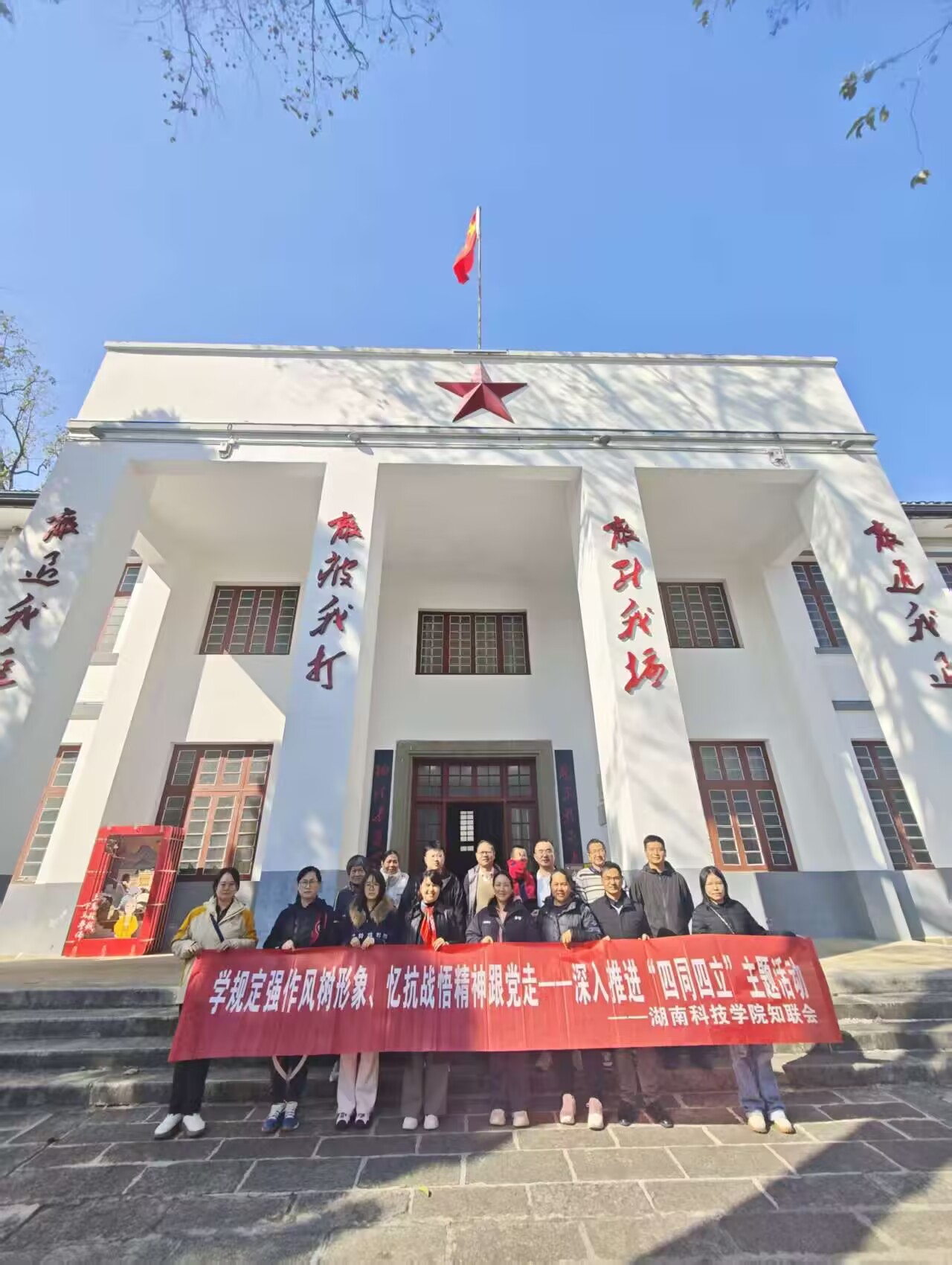 本网讯(通讯员 赵雄杰)为进一步加强自身建设,巩固“凝心铸魂强根基、团结奋进新征程”主题教育成果,11月21日,学校党外知识分子联谊会组织会员代表,前往爱国主义教育基地——南岳游击干部训练班旧址,开展了主题为“学规定强作风树形象、忆抗战悟精神跟党走”的实践教育活动,以此深入推进“四同四立”主题活动走深走实。