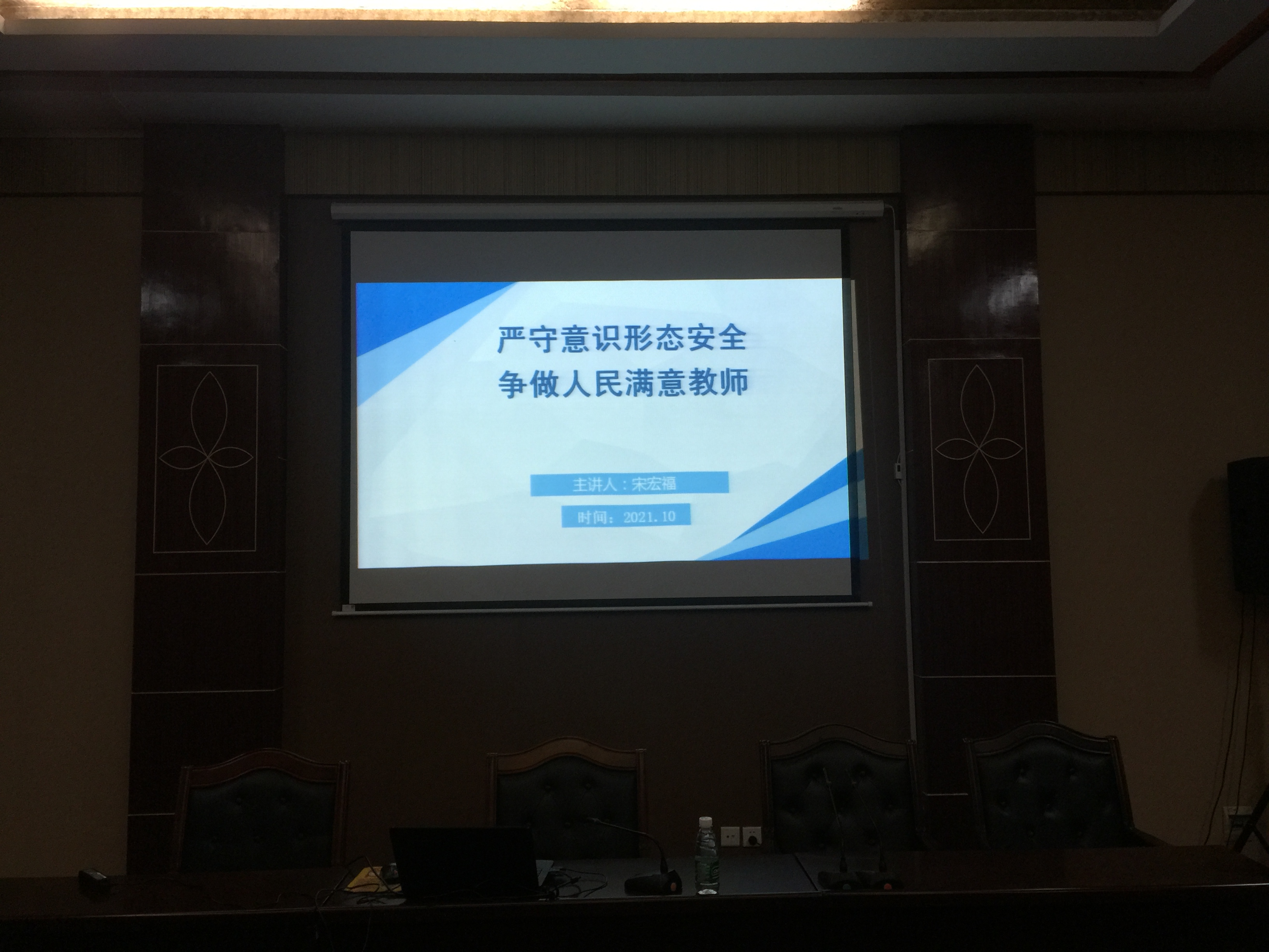 本网讯10月27日晚上19:30,为加强学校师德师风建设,校党委副书记宋宏福教授为2021年新进教师作题为“严守意识形态安全,争做人民满意教师”的专题报告,会议在学校行政楼八楼3会议室召开,周学斌,陈俊宏,黄丽等21位新进教师参加会议。