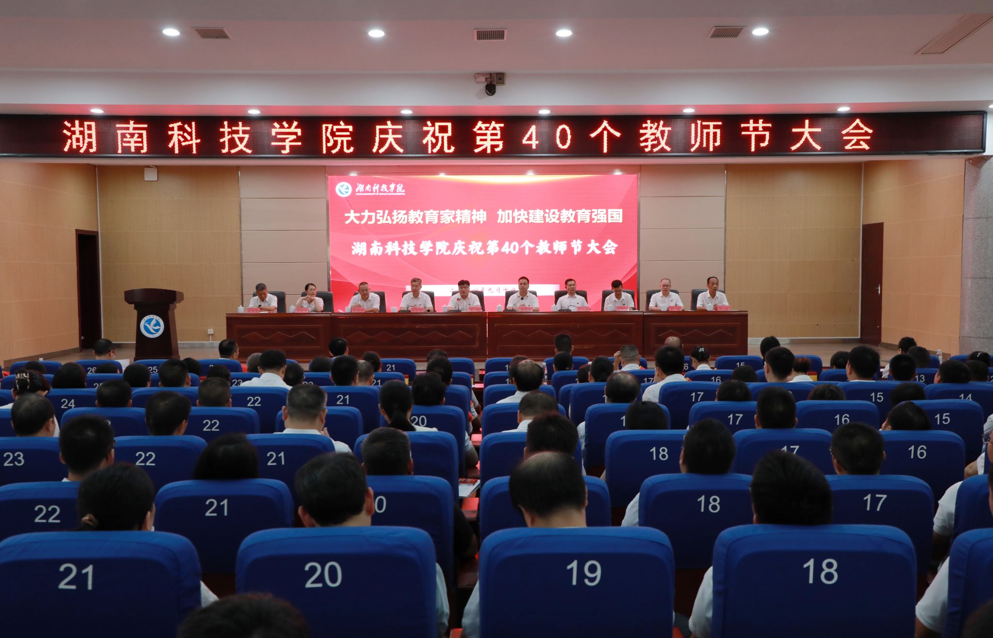 本网讯 (记者 孙淑娴 摄影 谢志豪)9月10日,学校在潇湘大讲堂举行庆祝第40个教师节暨优秀教师表彰大会,校党委书记李钢、校长黄创霞,校领导宋宏福、吴小林、何福林、陈灿军、郑银芳、何海,党委委员、组织部部长杨涛以及受表彰对象、新进教师、全体中层干部、教学学院教师代表参加会议。会议由黄创霞主持。